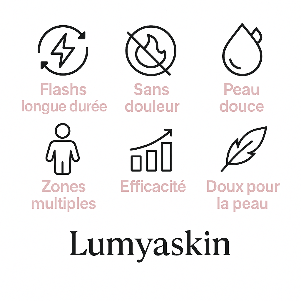 Lumyaskin utilise la technologie IPL (Intense Pulsed Light) pour désactiver la repousse du poil à la racine.